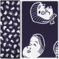 トップ > 締込み|ふんどし > 締込み・巻帯【おかめひょっとこ】紺(特岡)注染染め