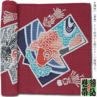 締込み・巻帯【大漁半纏|たいりょうばんてん】赤地差 ■白黒刺子■注染染め