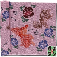 ■手ぬぐい・鉢巻【唐獅子牡丹|からじしぼたん】ピンク刺子(30番)注染染め