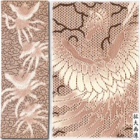 ■初めに『先染めの色無地生地から絵柄を抜染し(白抜き)』し、次に『絵柄に染料を注ぎ仕上げる』注染染めのなかでも高級な染色技法です。