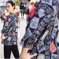 【商品詳細】鯉口シャツ「凧に纏」青黒刺子