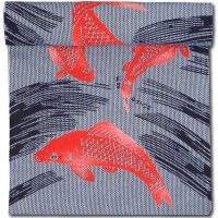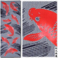 締込み・巻帯【鯉の柄|こいのがら】青黒刺子「多色染」注染染め