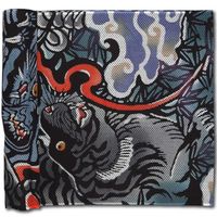 【商品詳細】締込み・巻帯「龍に虎」白黒刺子(青)細川染め=注染染め