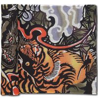 締込み・巻帯【龍に虎|りゅうにとら】白黒刺子(茶)細川染め=注染染め