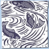 ■竜門と呼ばれる急流の滝を登り切った「鯉は龍となり天に舞い上がる」という伝説から、鯉柄は立身出世のシンボルと云われています。また、魚は卵をたくさん産むことから「子孫繁栄」の吉祥文様とされています。